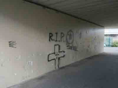 平成20年11月14日ボランティア活動「落書きなくし隊」で (小倉北区鋳物師町国家公務員宿舎横塀)の落書きを消しましたが… 12月12日にはまた新たに落書きをされていました。