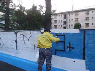 | 作業風景(小倉北区鋳物師町公務員宿舎塀) |
